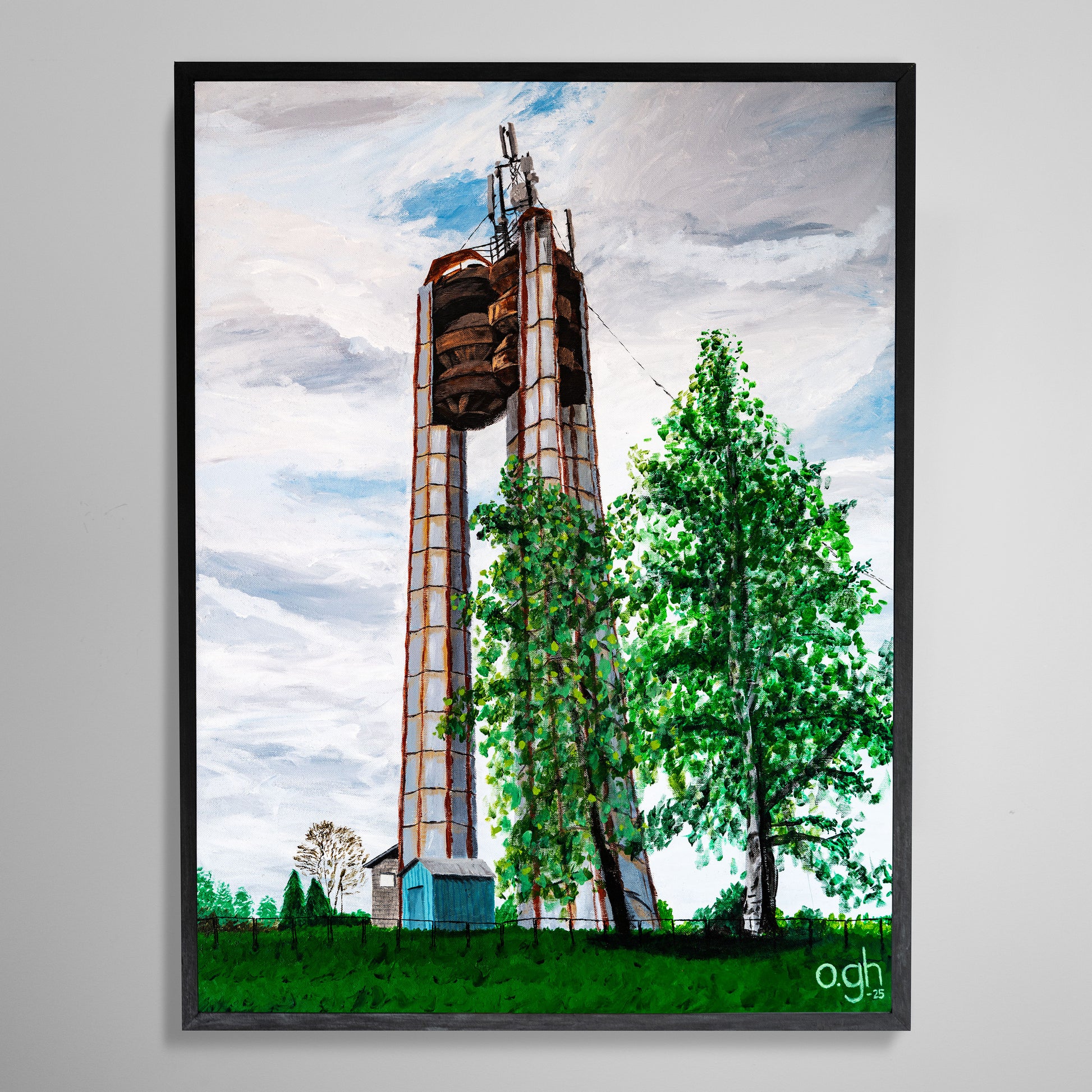 Akrylmålning "Lettiskt vattentorn" 60x80 cm Oskar Gyllenhammar oghart