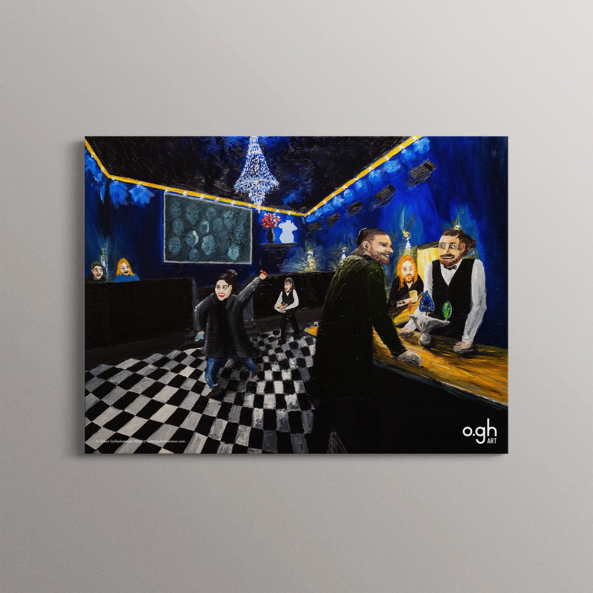 Motiv: "Nån av onsdagarna på Pelikan – en minnesbild" (Olja på duk 2024, 100×80 cm)